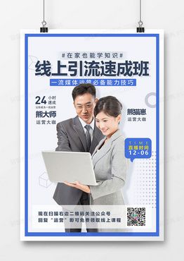 简约新媒体线上引流直播培训班海报设计