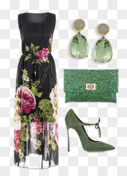 一组手绘文艺范女性秋装穿搭合集之长裙免抠元素
