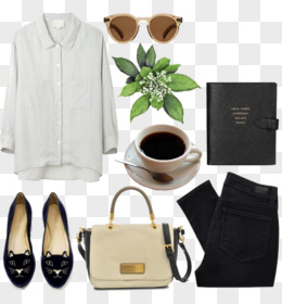 一组手绘文艺范女性秋装穿搭合集之紫色衬衫免抠元素