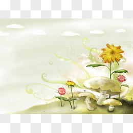卡通鲜花与蘑菇