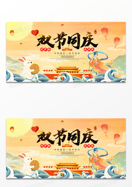 简约时尚卡通中秋国庆双节同庆中秋节国庆节宣传展板