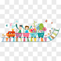 卡通彩色时尚乘坐火车小孩子