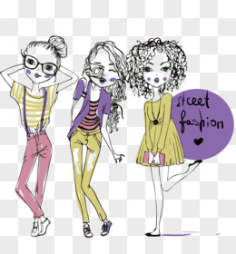 手绘时尚卡通女孩矢量素材