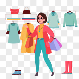 手绘卡通时尚女性商场购物素材