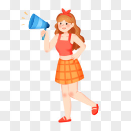 手绘卡通拿着喇叭的时尚女郎免抠素材