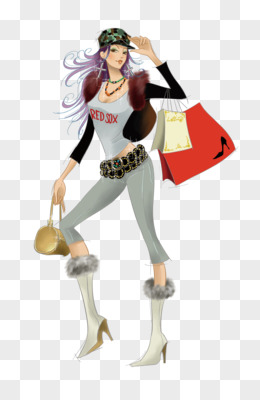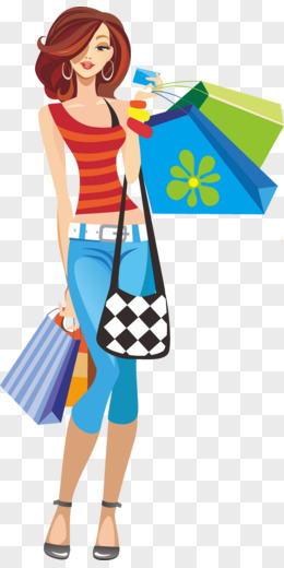 手绘卡通购物美女