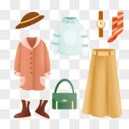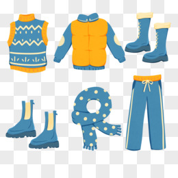 一组手绘卡通冬装服饰合集素材
