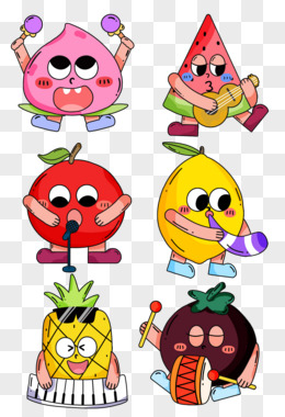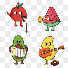 一组卡通拟人水果表演乐器免抠元素