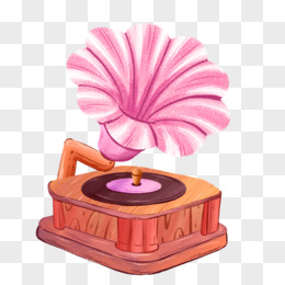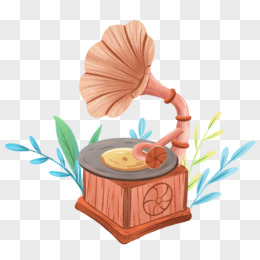 卡通手绘黑胶唱片留声机元素