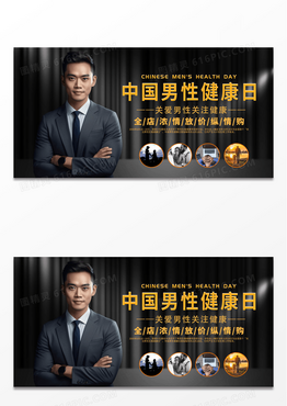 大气黑色时尚世界男性健康日关爱男性关爱健康展板