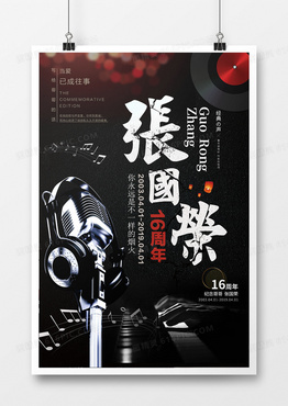 创意海报纪念怀念张国荣十五周年黑白灰海报