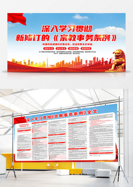 红色深入学习贯彻新修订的《宗教事务条例》展板