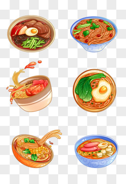 一组手绘不同种类面食合集素材