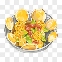 一组手绘哈尔滨特色美食合集元素铁锅炖
