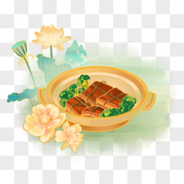 一组手绘描边风浙菜美食合集之东坡肉素材