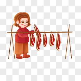 手绘卡通妈妈晒腊肉腊肠免抠元素