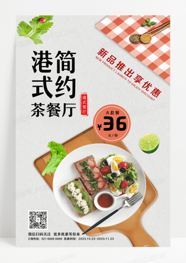 港式简约食物套餐港式简约茶餐厅宣传海报设计