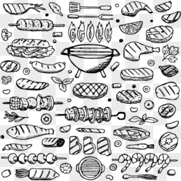 卡通国潮风线描传统小吃合集之肉夹馍元素