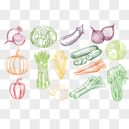 手绘线描蔬菜蒜苗简笔画装饰素材