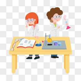 手绘卡通学生上化学课免抠素材