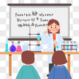 卡通手绘科学女老师讲课做实验场景素材