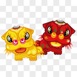 卡通手绘新年牛牛舞狮玩耍免抠元素