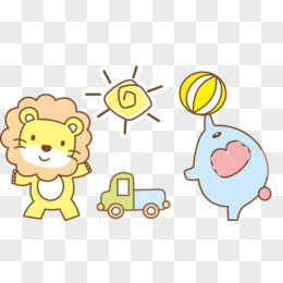 卡通手绘小女孩和舞狮子的人玩耍免抠元素