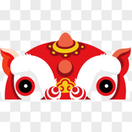 卡通手绘小女孩和舞狮子的人玩耍免抠元素