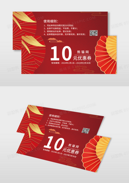 红色中国风餐饮代金券模版