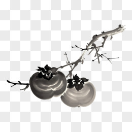 水墨风格柿子枝免抠元素