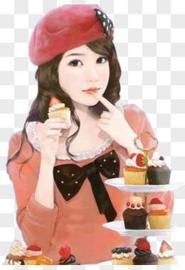 手绘吃蛋糕美女