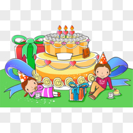 卡通手绘爷爷教孩子做蛋糕烘焙元素