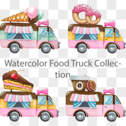 矢量手绘4个甜品外卖车