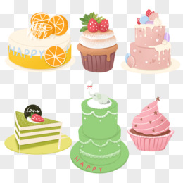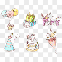 一组手绘生日蛋糕免抠元素