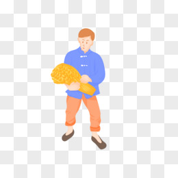 农民伯伯抱着丰收的大米形象元素