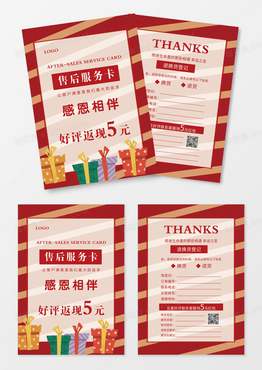 红色喜庆售后服务卡好评返现退换货登记宣传单好评返现