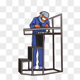 手绘矢量高空作业擦玻璃的工人免抠素材
