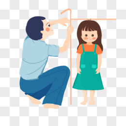 卡通手绘爸爸给孩子量身高素材