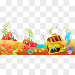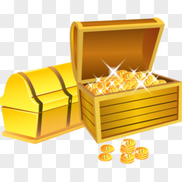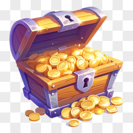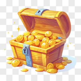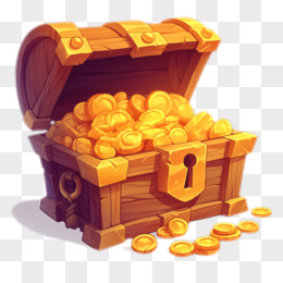 卡通手绘游戏风格装满金币的大宝箱免抠元素