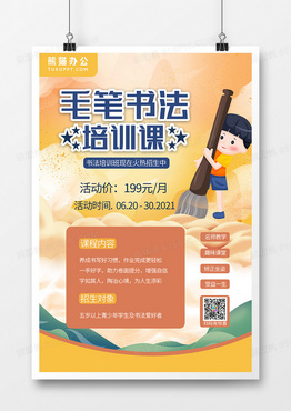 手绘少儿书法培训海报