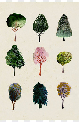 手绘卡通彩色树壁纸