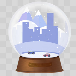 手绘玻璃雪球城市雪景元素