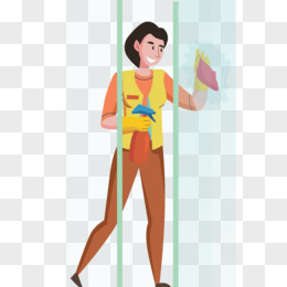 手绘卡通打扫卫生擦玻璃免抠素材