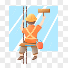 手绘高空作业擦玻璃元素