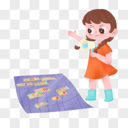 卡通手绘小女孩用吸尘器打扫免抠元素