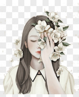 手绘鲜花与女孩