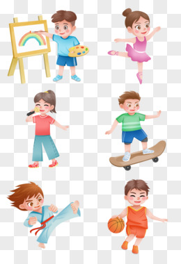 卡通手绘小朋友表演唱歌玩乐器场景元素