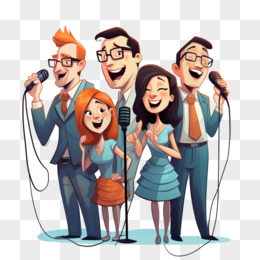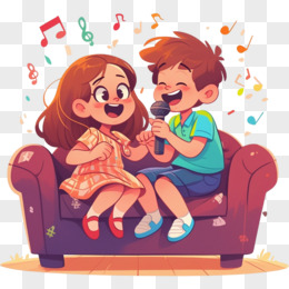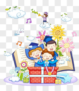 手绘卡通音乐老师环抱学生唱歌免抠元素