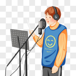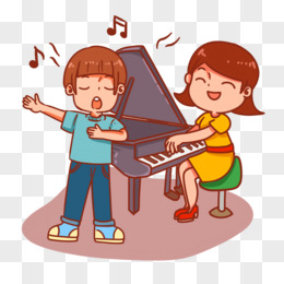 手绘卡通弹琴唱歌演唱场景免抠素材