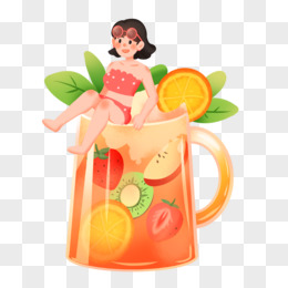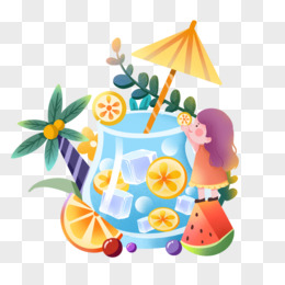 手绘卡通夏日橙汁水果饮品创意免抠素材